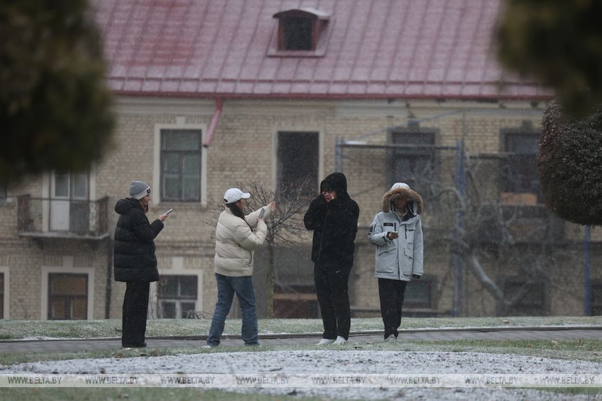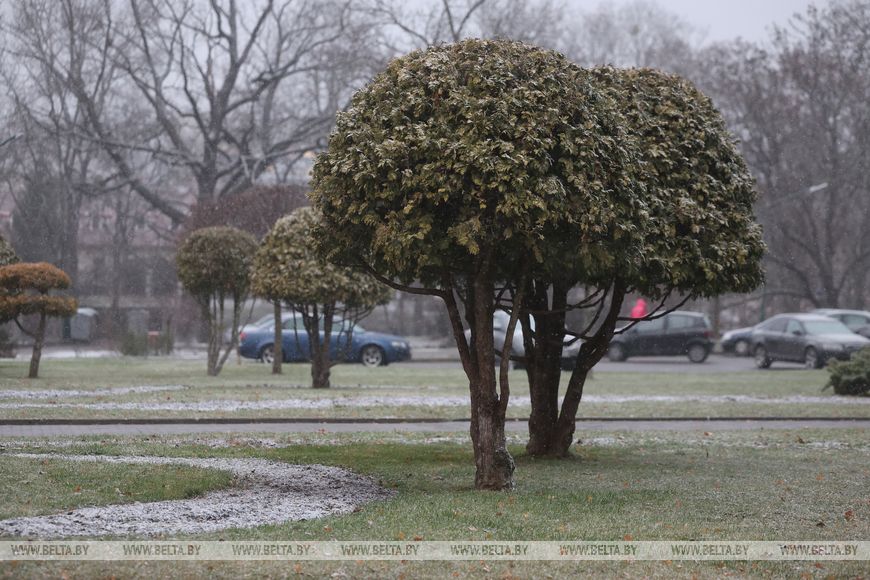 20 ноября, Гродно /Корр. БЕЛТА/. Первый снег выпал в Гродно. Улицы и парки выглядят по-настоящему волшебно. Первый снег напоминает о приближении зимы и усиливает ожидание праздников.-0-