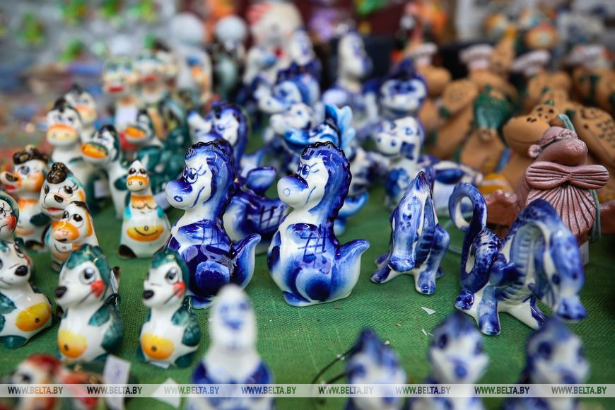 На ярмарке в широком ассортименте можно купить елочные игрушки, мишуру, карнавальные костюмы, сувениры и другую праздничную атрибутику. Ремесленники предлагают купить эксклюзивные изделия ручной работы.
