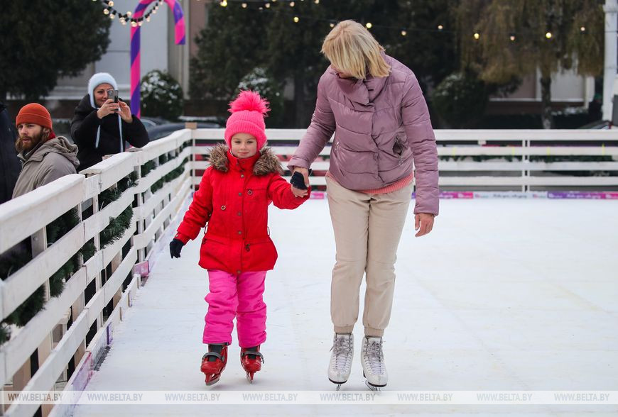 Многие с нетерпением ждали открытия предновогодней ярмарки на площади Ленина и прилегающей к ней улице Пушкинской. Она будет работать с 1 декабря по 19 января с 12.00 до 22.00. Эта ярмарка кардинально изменилась. Ее гвоздем можно назвать каток вокруг главной елки Бреста. Первые посетители опробовали искусственный лед сегодня в полдень. "Даже не пошли в садик, чтобы прийти на открытие катка и получить хорошие впечатления. Было интересно посмотреть, как все будет. Классно, что появляются новые идеи, молодцы. У нас в городе с каждым годом становится только лучше. Ярмарки посещаем с 1 декабря до самого последнего дня их работы. Гуляем, веселимся, наслаждаемся праздничными днями", - рассказала Юна Данилюк, которая привела на каток свою четырехлетнюю дочку Киру.