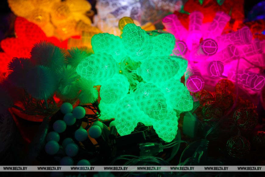 Изучая ассортимент, подметили, что выбор гирлянд стал еще более сложным. Продавцы стараются удивить и удовлетворить запросы даже самых капризных покупателей. Такие павильоны в прямом смысле самые сверкающие и манящие. "В этом году очень широкий ассортимент товара, много новинок как по бахроме, так и по шнурам. У нас можно купить гирлянду минимальной длины 3 м, а максимальной - 100 м. Люди прогуливаются по ярмарке, подходят, смотрят. У них впереди еще месяц, чтобы сделать выбор. Кто-то сразу покупает украшения домой. В основном внимание привлекают новые виды. Хочется людям разнообразия, поднадоели, видимо, обычные огоньки", - заметила продавец Анна Дымар.