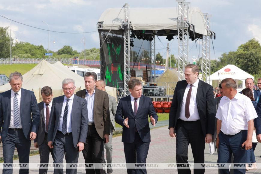 Во время выездного заседания оргкомитет проконтролировал готовность инфраструктуры, ознакомился с подготовкой площадок к празднику - работы уже вышли на финальный этап: заканчивается монтаж основной сцены, устанавливаются торговые павильоны. С завтрашнего дня начнутся репетиции творческих выступлений. "Во время торжественного открытия фестиваля впервые каждая область и город Минск продемонстрируют свои визитные карточки. Это даст возможность жителям Беларуси и иностранным гостям познакомиться не только с Могилевской областью, но и другими регионами. Мы надеемся, что это будет интересно зрителям", - отметил Игорь Петришенко.