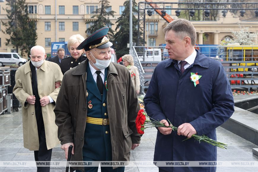 7 мая, Минск /Корр. БЕЛТА/. Ветераны видят, как люди чтят их героические действия, которые они ежедневно совершали во время Великой Отечественной войны. Такое мнение высказал сегодня журналистам заместитель премьер-министра Игорь Петришенко во время возложения цветов к Вечному огню на площади Победы, сообщает корреспондент БЕЛТА.