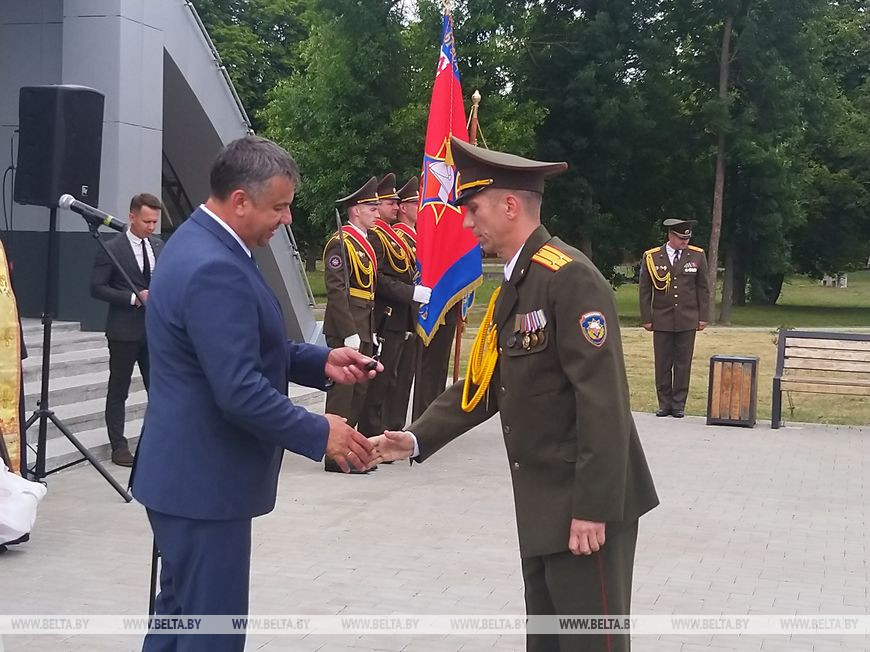 24 июля, Брест /Корр. БЕЛТА/. Пять новых пожарных автоцистерн переданы в подразделения МЧС Брестской области. Сертификаты и ключи от машин спасателям вручил председатель облисполкома Юрий Шулейко на торжественном мероприятии, посвященном 170-летию образования пожарной службы Беларуси, передает корреспондент БЕЛТА.