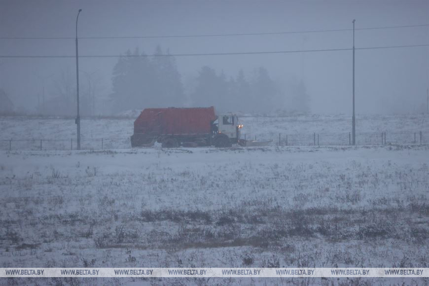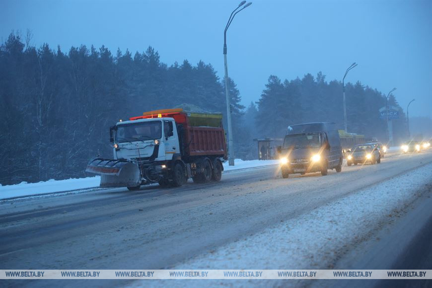 Для безопасности водителей и пешеходов на дорогах Минщины работает техника по уборке снега, проезжая часть обрабатывается песко-соляной смесью. ГАИ просит с пониманием отнестись к профилактическим мероприятиям и настоятельно рекомендует не опережать, а тем более не обгонять снегоуборочную технику.