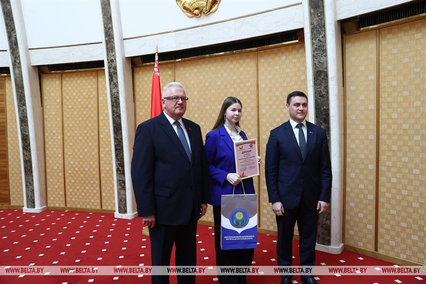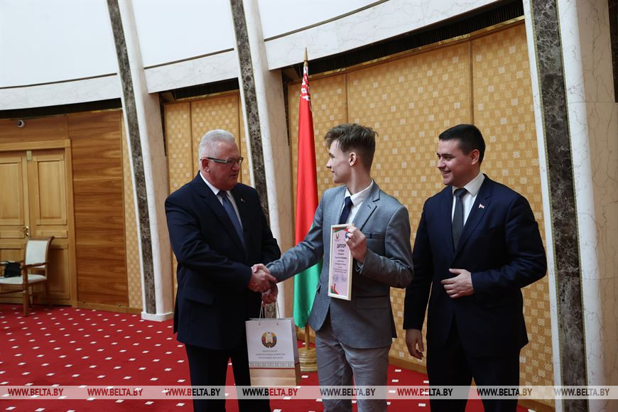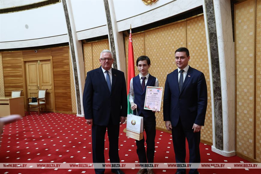 Победители получили дипломы и подарки из рук председателя Центральной избирательной комиссии Игоря Карпенко и министра образования Андрея Иванца. "Согласно измененному Избирательному кодексу, который мы приводили в соответствие с Конституцией, принятой на референдуме, появилась одна из новых функций Центральной избирательной комиссии - участие в правовом просвещении граждан, в том числе молодежи в области избирательного права и избирательного процесса. И мы с Министерством образования подписали целый план взаимодействия по правовому просвещению молодежи, формированию правовой культуры подрастающего поколения. А это очень важная составляющая для формирования и гражданина, и патриота нашей страны, - сказал Игорь Карпенко. - В рамках этого плана мы впервые провели интернет-олимпиаду по избирательному законодательству и избирательному процессу. Сегодня 22 победителя, которые заняли первое, второе и третье места, награждены дипломами".