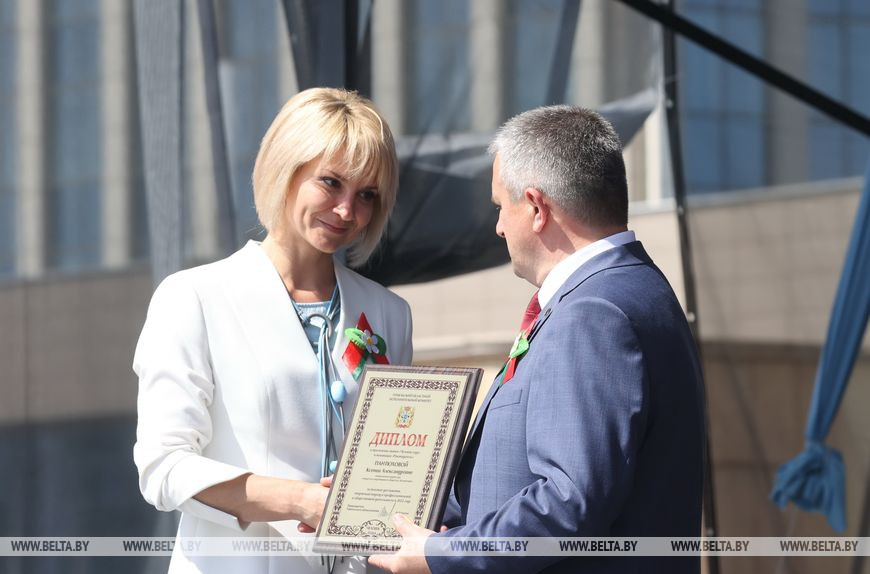 3 июля, Гомель /Корр. БЕЛТА/. Почетного звания "Человек года" в Гомельской области по итогам работы в 2022 году удостоены 24 человека. Заслуженные награды лауреатам вручил на торжестве, посвященном Дню Независимости Беларуси и 79-й годовщине освобождения страны от немецко-фашистских захватчиков, председатель Гомельского облисполкома Иван Крупко, сообщает корреспондент БЕЛТА.