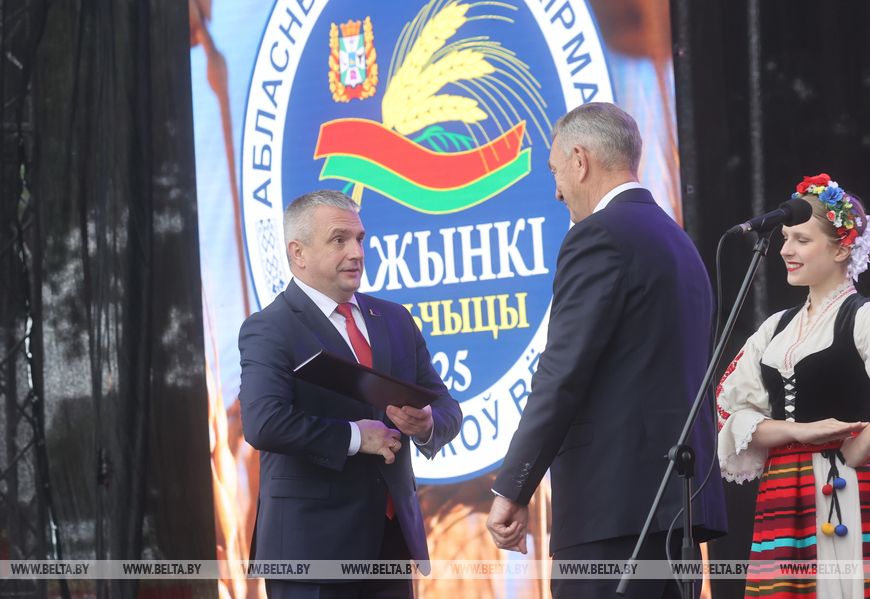 3 октября, Лельчицы /Корр. БЕЛТА/. Почти 500 экипажей комбайнеров Гомельской области намолотили свыше 1 тыс. т зерна на жатве-2025. Такие данные озвучил председатель облисполкома Иван Крупко на областном фестивале-ярмарке "Дажынкі-2025", столицей которого стали