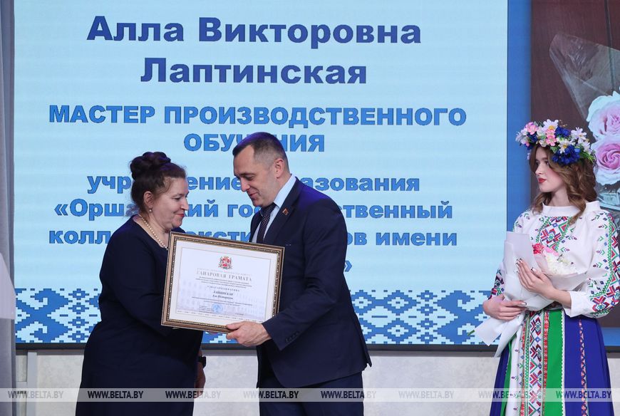 Также в колледже сегодня прошло мероприятие, посвященное 85-летию системы профтехобразования. Колледжи региона представили свои презентационные площадки, рассказали о специальностях, которые можно получить на их базе. Учащиеся и педагоги приняли участие в торжественном концерте, где отметили главные вехи в развитии белорусского профтехобразования. Ветеранам этой сферы председатель облисполкома Александр Субботин вручил заслуженные награды за преданность выбранному делу. Глава региона подчеркнул, что с человека труда, стоящего у заводских станков и производственных линий, начинается страна, их работа нелегкая, но очень уважаемая и почетная.-0-