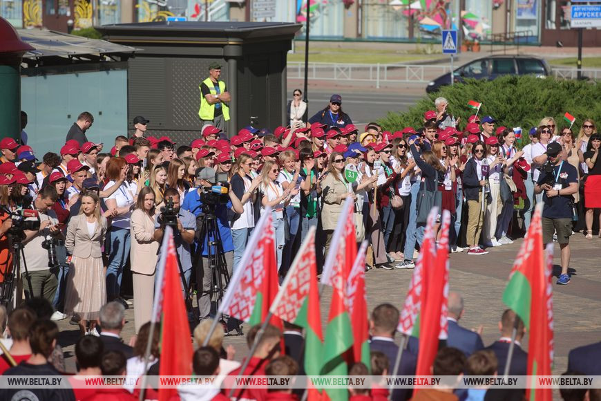 "Вы участники столь масштабного проекта "Поезд Памяти", мы рады приветствовать вас в Гродно, на гостеприимной Принеманской земле. Город действительно сохранил свой исторический уникальный вид. Вы сегодня посетите историческую часть города, посмотрите, как живут люди здесь. Но главное, что мы помним: в эти дни два братских народа отмечают скорбную дату - начало войны, попытку уничтожения наших народов оккупантами и захватчиками. Цель проекта, в котором вы участвуете, - поддержать историческую память, окунуться в это", - сказал на торжественной встрече участников проекта помощник Президента - инспектор по Гродненской области Юрий Караев.