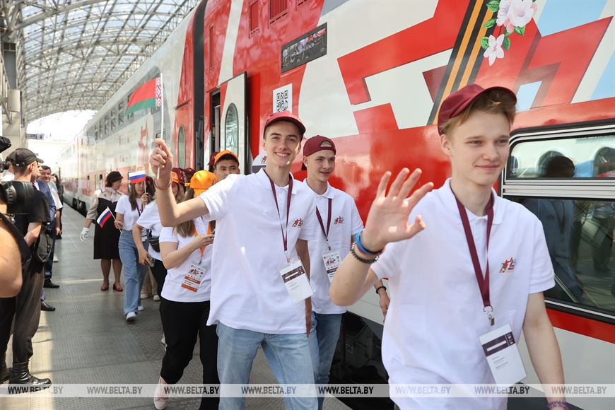 В поезде приехали школьники из России, Кыргызстана и Армении. На перроне вокзала Брест-Центральный их встретили сверстники из Беларуси. Громко и радостно поприветствовав друг друга, ребята отправились на организационное собрание, где получили последние напутствия перед путешествием.