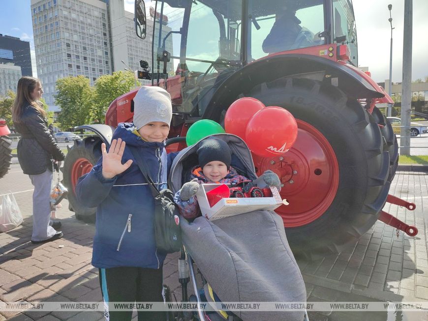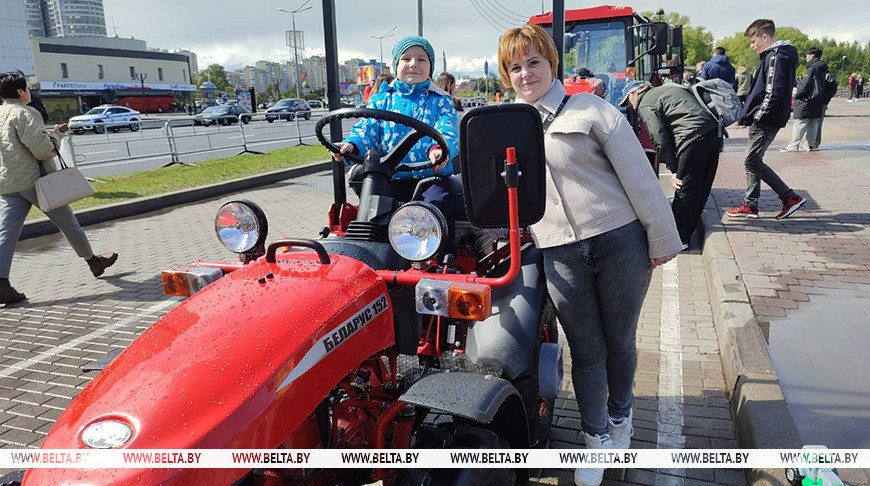 Наталья Лавринович на фестиваль пришла всей семьей - с сыновьями Кириллом и Мишей, мужем и мамой. "Детям очень нравится выставка техники, невозможно оторвать. Старший где-то там с папой стоит в очереди, чтобы примерить противогаз. Все нравится, эмоции переполняют, хочется везде побывать, все потрогать. Очень крутой формат праздника. Считаю, что таких нужно больше, потому что важно приобщать детей к этому. В Беларуси есть чем гордиться, есть что показать. Вот мы сызмальства им показываем, и рады, что есть для этого возможность. Сыновья у нас уже сейчас хотят и пожарными быть, и милиционерами, и трактора нравятся", - рассказала минчанка.Около торговой точки МТЗ скопилась немалая очередь - мальчишки хотят себе в коллекцию игрушечный трактор. Семилетний Георгий Михайлов с восторгом благодарит маму за покупку и весело рассказывает, как обожает эту технику. "Они со всей техники полазили только в тракторах, - добавила мама Анна Михайлова. - Еще им нравится участвовать в разных конкурсах, потому что там есть возможность выиграть призы".