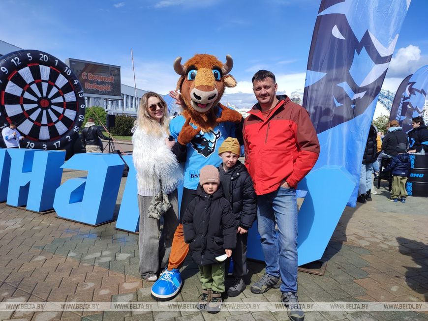Самые активные и спортивные обязательно задерживаются у площадки хоккейного клуба "Динамо-Минск". Здесь предлагают попробовать себя в этом виде спорта.