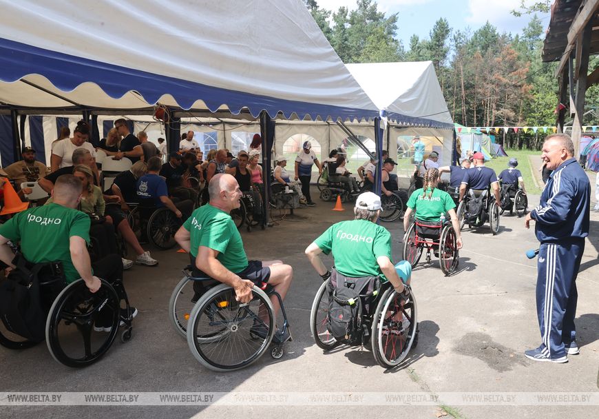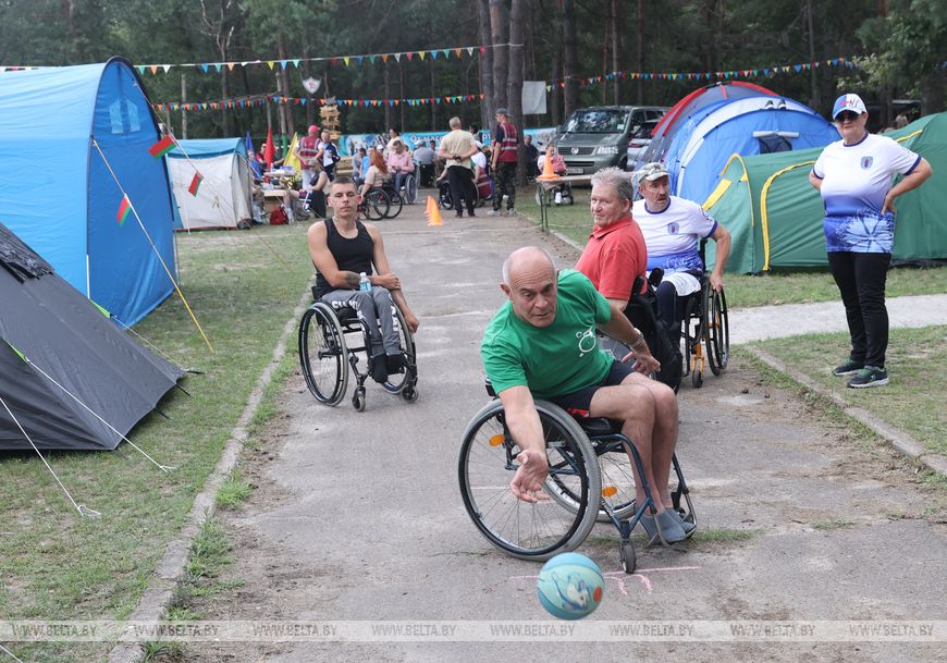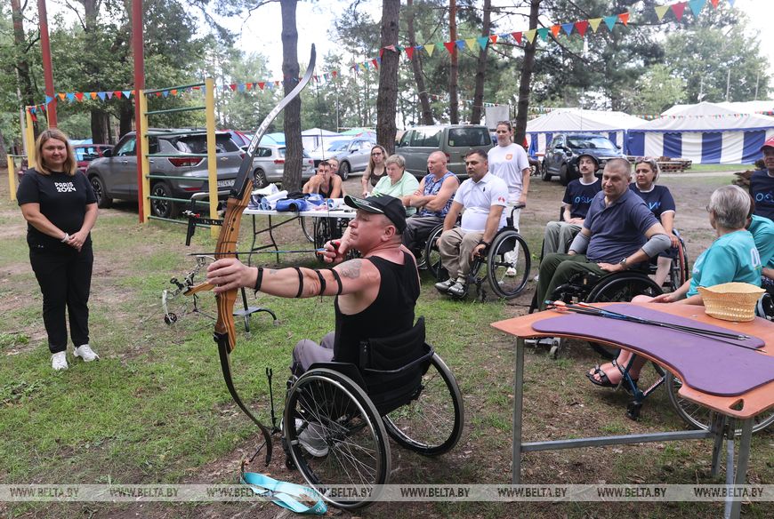 Представители команды из Орши Марина Шайдо и Дмитрий Дайнеко заряжены самым главным - отличным настроением. "Не в первый раз здесь. Все очень нравится. Приятно видеть новые лица. Ожидание самые хорошие, ведь здесь царит атмосфера дружбы, очень весело и здорово. Конкурсы интересные. По спортивной части у нас за много лет все отработано - стрельба, дартс, эстафета и др. Поэтому всей командой на творческий вечер подготовили миниатюру по мотивам кинофильма "Белое солнце пустыни", - приоткрыли свой расклад туристы из Орши. Всего в команде из северного региона страны восемь человек, пятеро из которых на колясках.