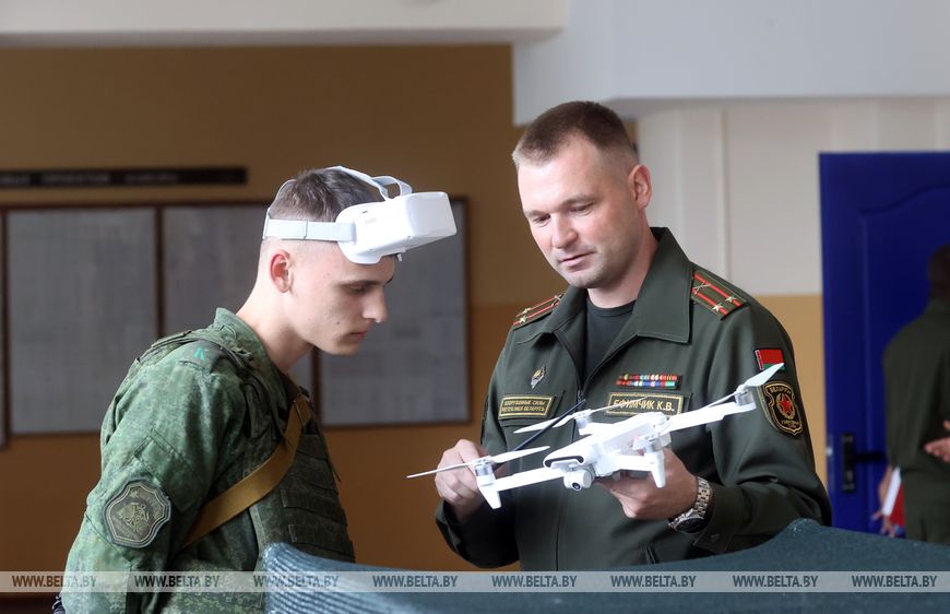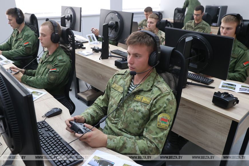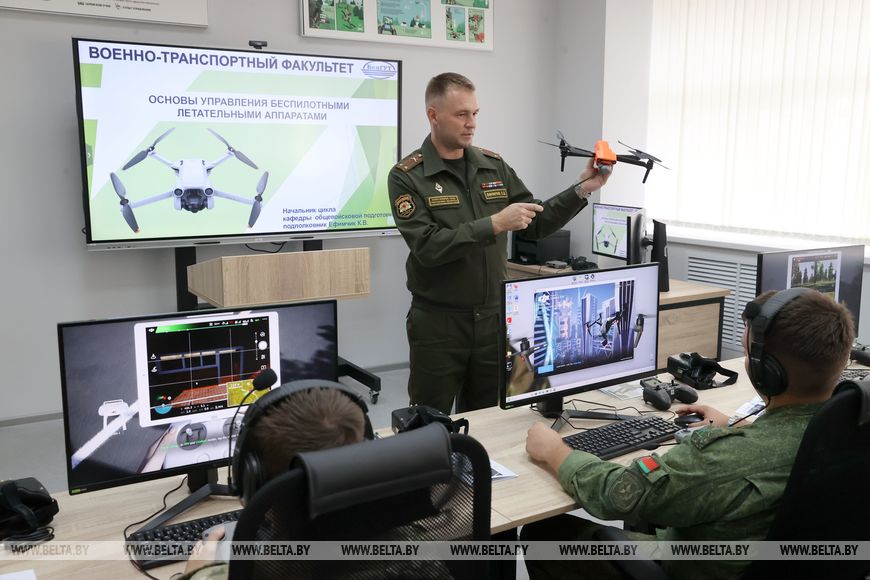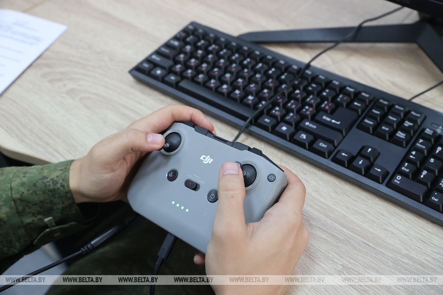 Начальник цикла кафедры общевойсковой подготовки Константин Ефимчик задает задание и следит за процессом. "Берем джойстик и начинаем летать", - дает команду подполковник.