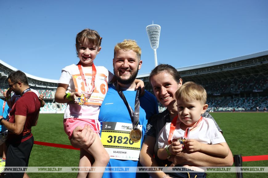 Маленькие атлеты вместе с родителями, как настоящие спортсмены, стартовали на стадионе "Динамо", преодолели "взрослую" трассу в 1,4 км и получили медали.