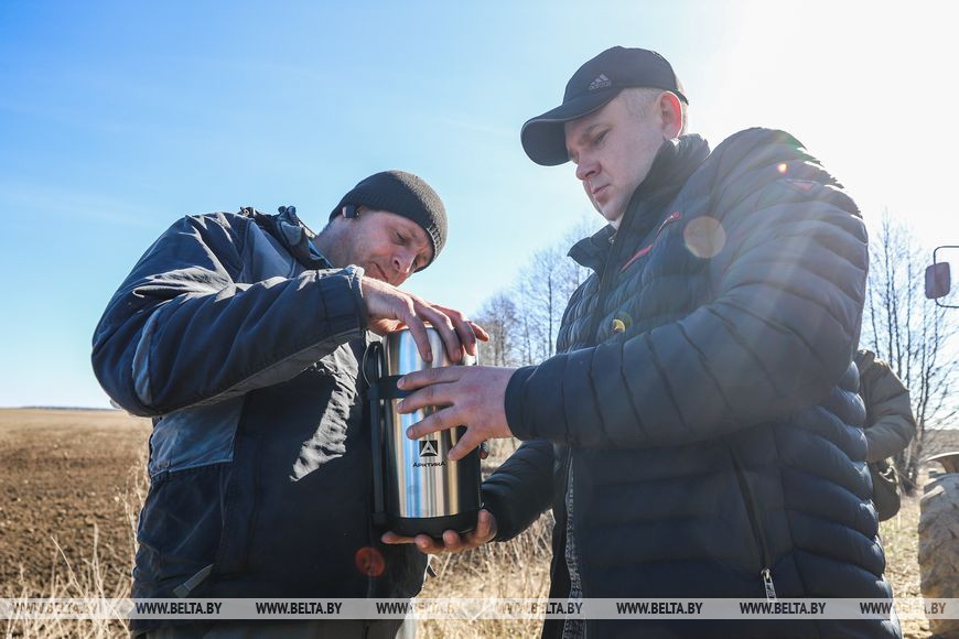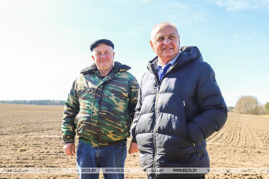 Руководителей "Видомлянского" находим за пару километров от поселка. Настроение директора Михаила Страпко и его заместителя по растениеводству Александра Русецкого приподнятое. "Уже не то что пробуем, а уже идет посевная. Вчера начали и сразу окунулись в работу. Бывает так: вроде весна пришла, ты и сеять начал, а потом неделю не можешь войти в поле. Как-то отбрасывает назад, и настроение уже не то. А тут начали, и идет процесс - это радует", - делится Михаил Страпко.