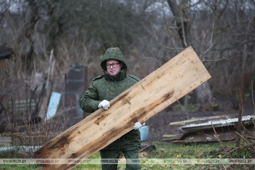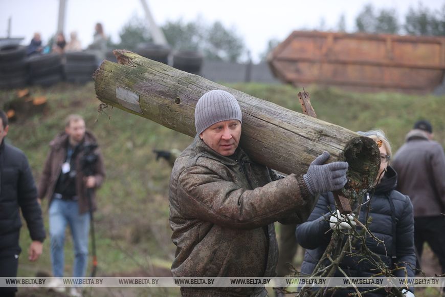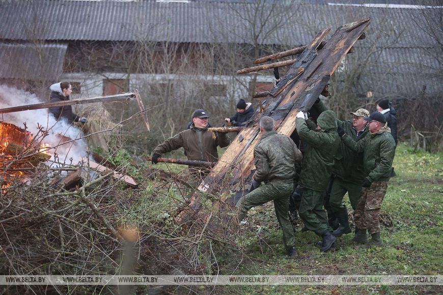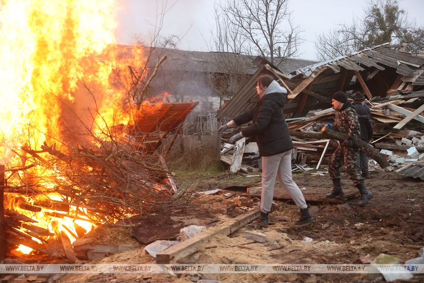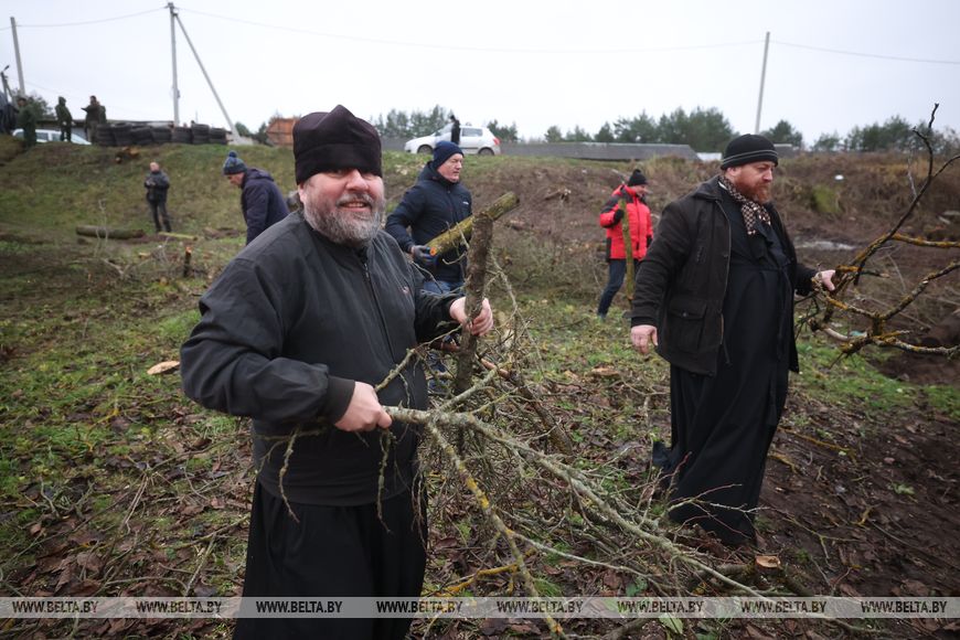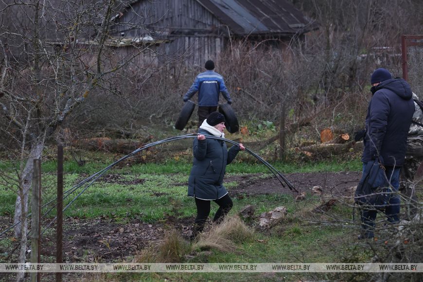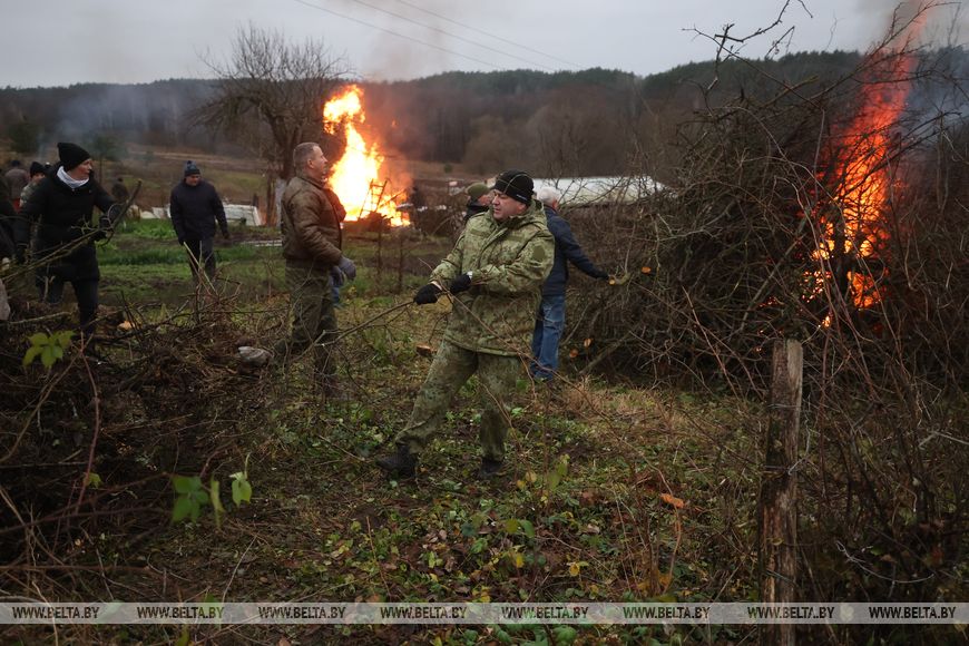 В агрогородке трудовой десант был занят и во время республиканского субботника в октябре. Сегодня работы развернулись на неприглядном участке на окраине населенного пункта, где раньше были самовольно сделанные огороды, возведены хозпостройки. Трудовой десант, а это представители Гродненского облисполкома, Слонимского райисполкома, представители духовенства и местные жители, расчищали территорию, разбирали ветхие хозяйственные постройки.