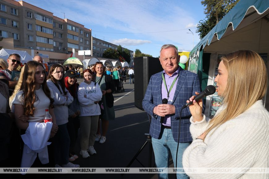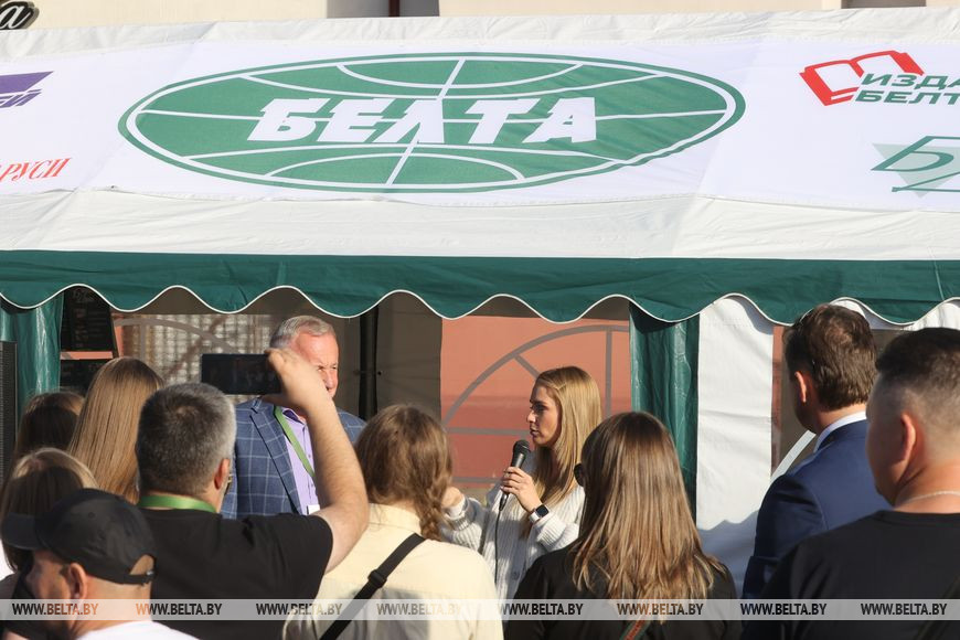 Бело-зеленый павильон с логотипом БЕЛТА заметен издалека на ул.Князя Паскевича. Его отличает выкладка продукции газеты "7 дней", издательства и журналов "Белдумка", "Экономика Беларуси". Кроме этого, с утра на выездной мини-планерке собрались редакторы изданий. Это люди, которые знают толк в аналитике, свежести информации и интересной подаче.