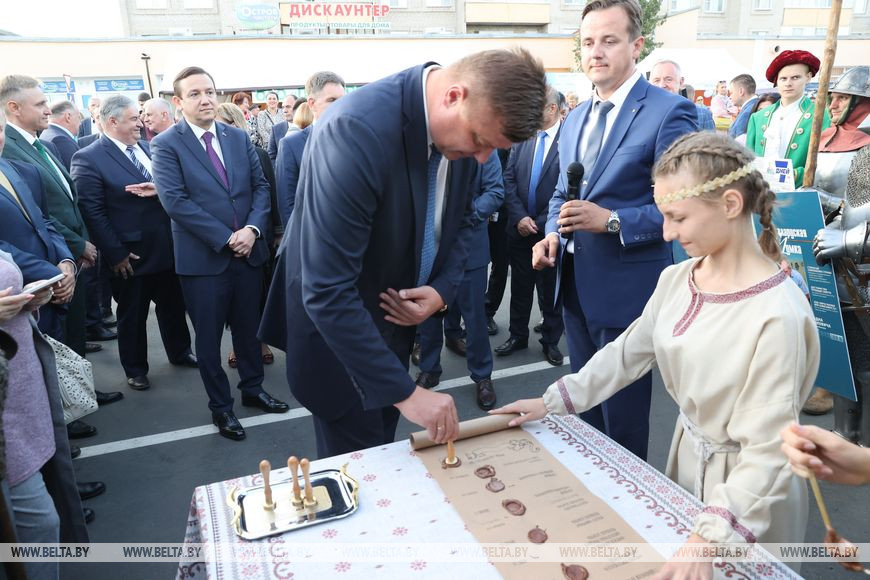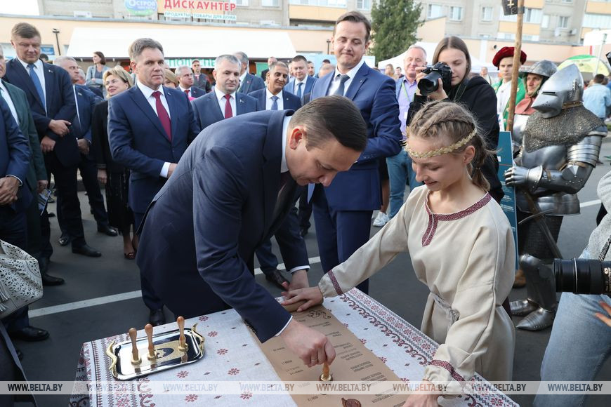 Во время театрализованной исторической постановки-презентации гостям предложили поставить сургучные штампы-подписи под обращением к участникам Дня белорусской письменности - 2032.