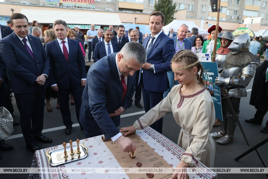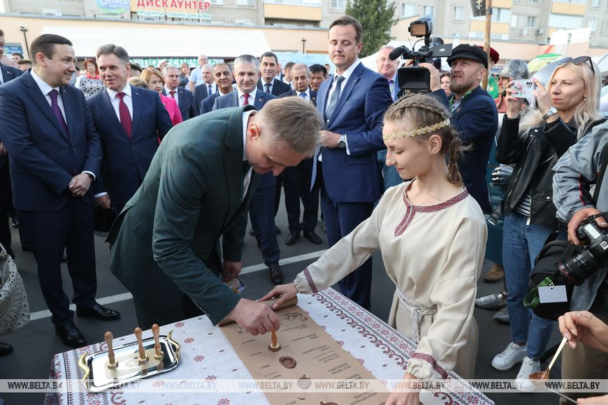 Эту почетную миссию выполнили заместитель премьер-министра Игорь Петришенко, председатель Гомельского облисполкома Иван Крупко, помощник Президента - инспектор по Гомельской области Николай Рогащук, председатель союза писателей Беларуси Александр Карлюкевич и председатель Добрушского райисполкома Александр Матарас.