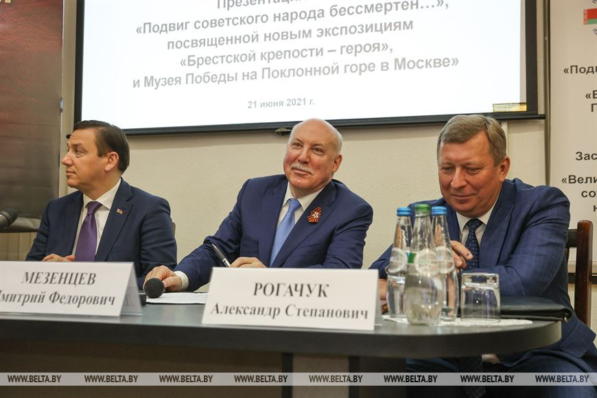 21 июня, Брест /Корр. БЕЛТА/. В Бресте сегодня состоялась презентация книги "Подвиг советского народа бессмертен...", посвященной новым экспозициям Брестской крепости-героя и Музея Победы на Поклонной горе в Москве. Эту книгу издал Постоянный комитет Союзного государства к 80-летию начала Великой Отечественной войны, передает корреспондент БЕЛТА.