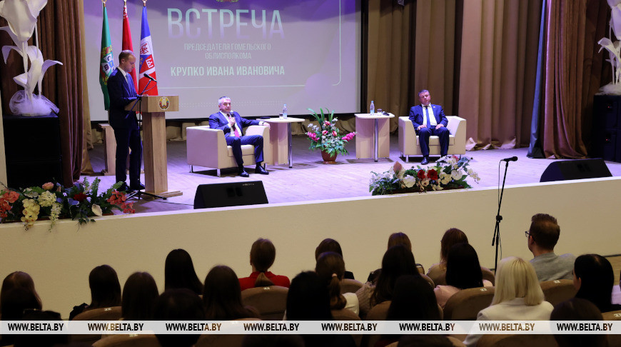 В диалоге с главой региона молодежь интересовалась, какая продукция гомельских производителей пользуется наибольшим спросом. Иван Крупко отметил, что сегодня стоят очень серьезные задачи перед каждым предприятием. "Ведь из объема продукции, которую мы производим, около 60% продаем почти в 100 стран. Против нас, надо сказать открыто, ввели незаконные санкции, нарушив все логистические пути. Поэтому наша задача - разработать логистические цепочки и в странах-партнерах найти те направления, по которым мы сегодня имеем возможность продать нашу качественную, безопасную и конкурентоспособную продукцию", - подчеркнул председатель облисполкома.Спектр продукции, востребованной в разных точках мира, очень большой. "Чтобы устойчиво развиваться, нужен объем реализованной продукции. Мы работаем в тех направлениях, в тех странах, где мы можем конкурировать. Задача внутри - модернизироваться и быть на шаг впереди, чтобы быть конкурентоспособными. Есть три важные составляющие - качество, безопасность и конкурентоспособность. Тогда мы устойчивы на рынке", - убежден председатель облисполкома.
