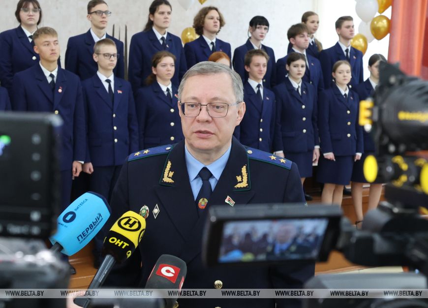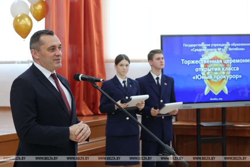 Генеральный прокурор Беларуси Андрей Швед, участвовавший в открытии профильного класса, рассказал, что в этом году в стране действуют 14 правовых классов "Юный прокурор". "Для чего мы все это делаем? Мы это делаем для того, чтобы укреплять нашу страну, чтобы те, кто придет к нам на смену, кто в ближайшие годы будет принимать ответственные решения, уже сейчас, со школьной скамьи, формировались настоящими патриотами. Мы делаем это для того, чтобы они понимали, как важно сохранить то, что добыто нашими предками, в наше непростое время, и какие усилия необходимо прилагать, чтобы было и мирное небо над нашей головой, и люди не боялись ходить по улицам, и работали завод и предприятия, развивалась наша страна", - подчеркнул он.