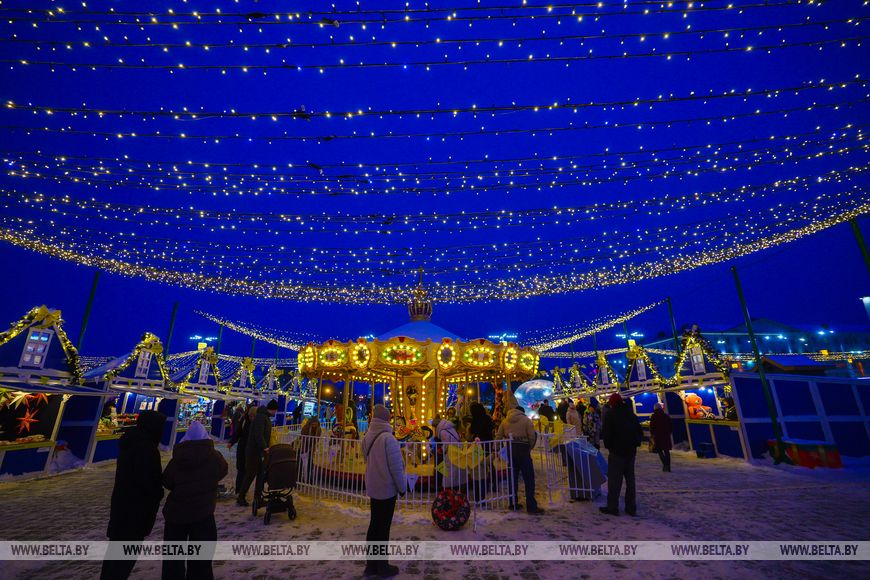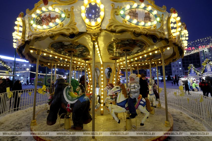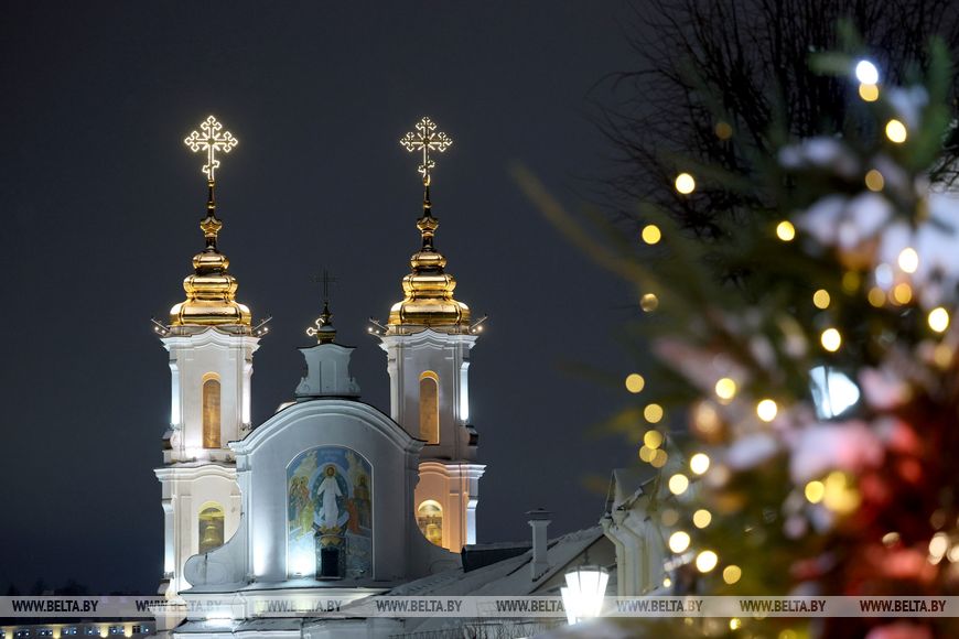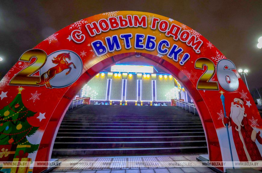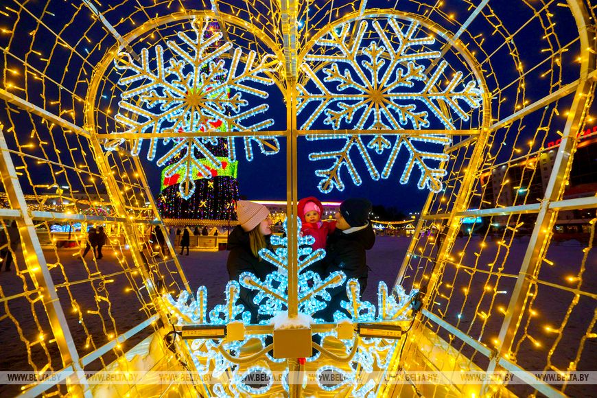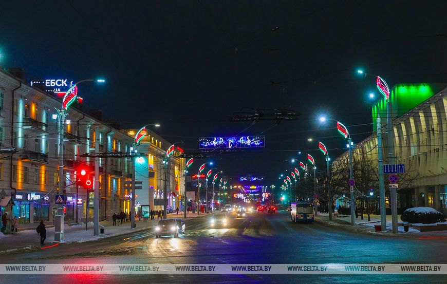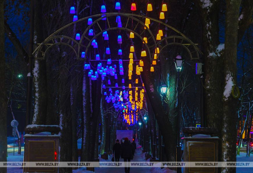 6 января, Витебск /Корр. БЕЛТА/. Красочные гирлянды, световые фигуры и яркие композиции украшают улицы Витебска.-0-