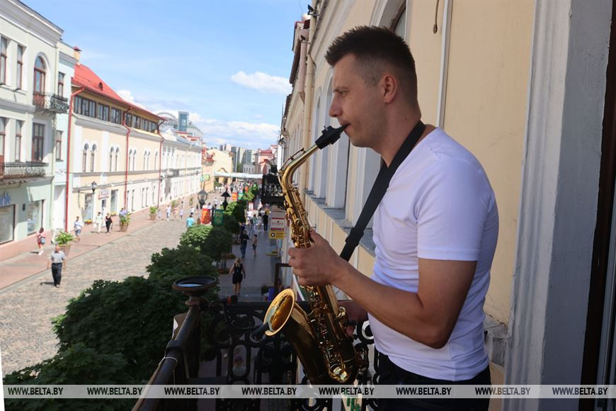 Пешеходная улица Советская стала на день гродненским бродвеем, главная изюминка которого - концерты на балконе. Также здесь традиционно представлены работы ремесленников и народных мастеров.