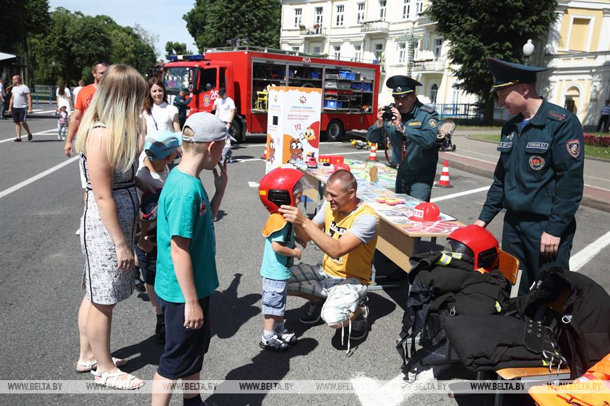 На площади Тызенгауза экстренные службы подготовили локацию "Остров безопасности". В игровой и познавательной форме детей знакомят с правилами безопасного поведения. Есть возможность примерить амуницию спасателя, посидеть в спецавтомобиле, поучаствовать в тематических конкурсах и квестах. Кроме того, с площади Тызенгауза стартует экскурсия по городу на первом в Гродно электробусе.
