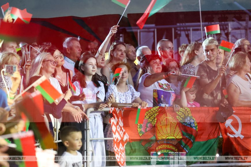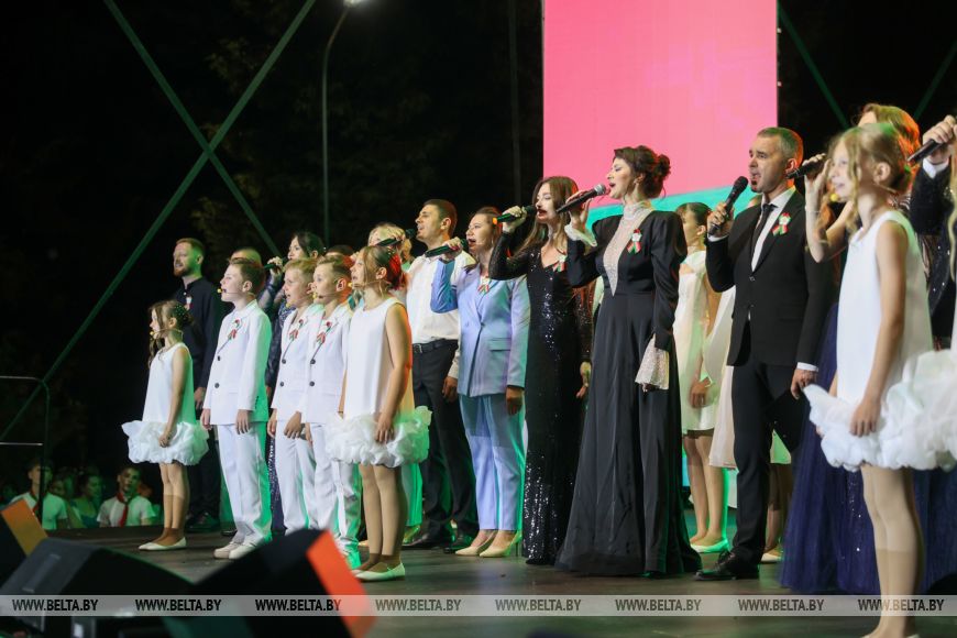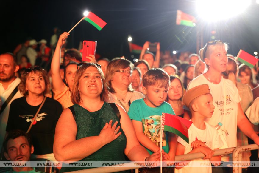 3 июля, Брест /Корр. БЕЛТА/. Эпицентром торжеств в честь Дня Независимости стала площадка у Звезды - на главном входе в мемориальный комплекс "Брестская крепость-герой". На сцену один за другим выходят известные белорусские артисты - их встречают бурными аплодисментами.-0-