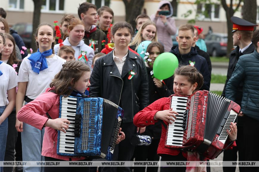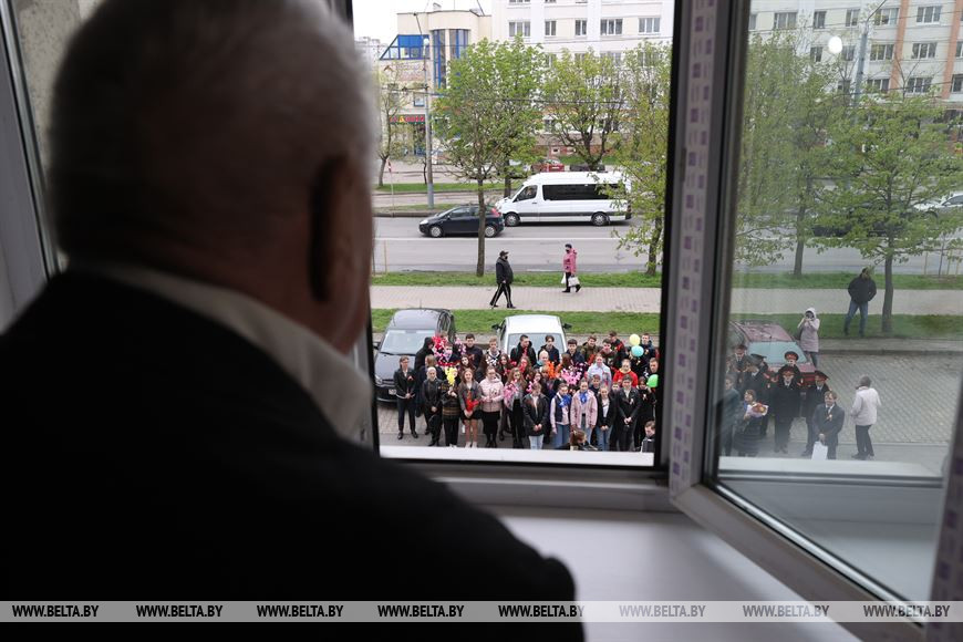 Праздничную атмосферу ветеранам могилевские ребята создали красочными творческими номерами: танцами, песнями и игрой на музыкальных инструментах. Кадеты Могилевского областного кадетского училища прошли настоящим парадом под окнами ветеранов.