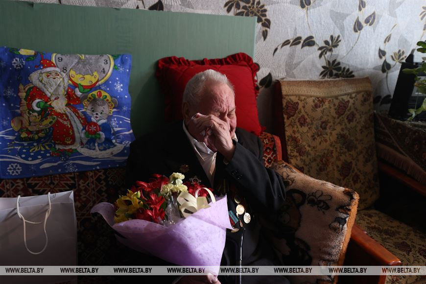 Музыкальный подарок молодежь Могилева подготовила еще для одного ветерана - Павла Козлова. В этом году ему исполнилось 96 лет. Войну он встретил в возрасте 17 лет. Прошел курс молодого бойца и направился на фронт служить связистом. Воевал в Украине, прошел Австрию, Венгрию, Чехословакию. В одном из боев был ранен, получил контузию. До конца войны еще дважды был ранен. Фронтовик рассказал, что из госпиталя всегда досрочно просился на фронт, чтобы дальше участвовать в боевых действиях. С войны вернулся в 1948 году, имеет многочисленные награды.