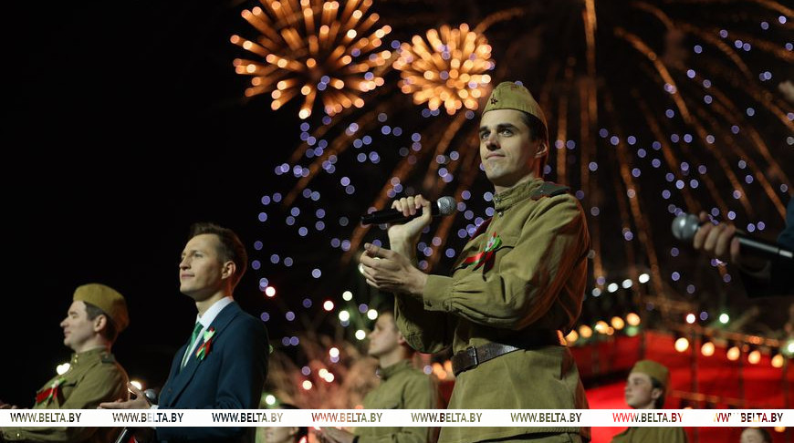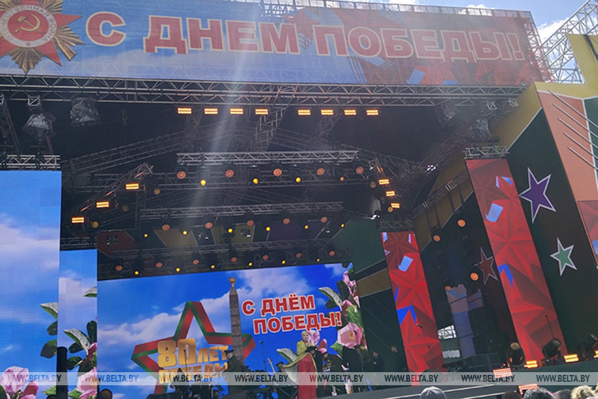 На сцене у Дворца спорта сегодня выступили Академический ансамбль песни и танца Вооруженных Сил, Национальный академический народный хор Беларуси им. Г.И.Цитовича, ансамбль "Верасы" и другие коллективы. В гала-концерте "Великая Победа" приняли участие известные белорусские исполнители, в том числе Жанет, Александра Гайдук, народный артист Беларуси Владимир Громов. Хедлайнером стал известный российский исполнитель Денис Клявер.Парк Павлова в этот день наполнился особой атмосферой: множество людей, концертная программа и интересные выставки от школ и гимназий Минска. Мало кто пришел один - в основном рядом члены семьи. Для детей было организовано море развлечений: мастер-классы по изготовлению открыток, цветов из бумаги, картин из цветного песка.