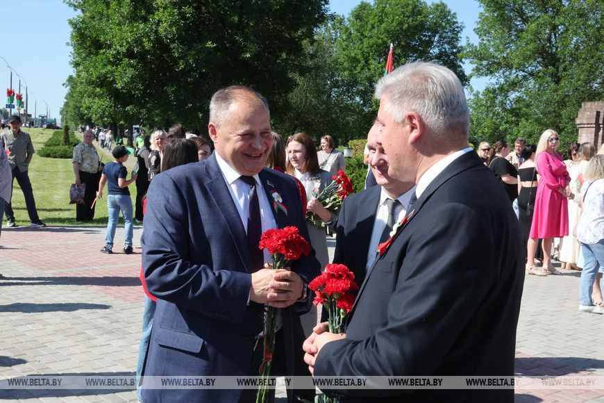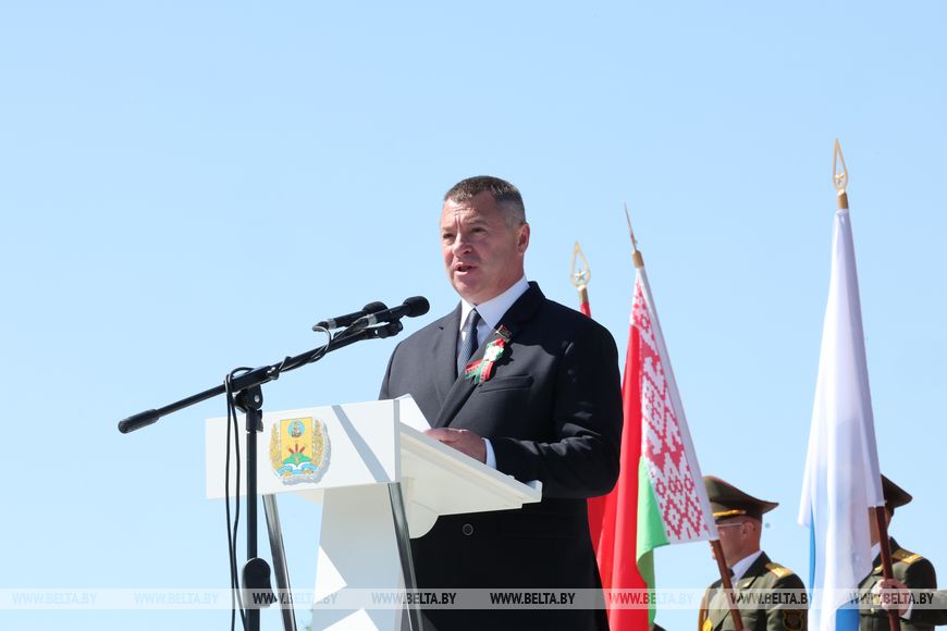 Во время торжественного мероприятия к присутствующим обратился председатель Могилевского областного Совета депутатов Александр Горошкин. "День независимости Республики Беларусь олицетворяет собой героизм прошлого, стабильность настоящего и процветание будущего. Белорусы пережили кровопролитные войны, сумели выстоять в тяжелые послевоенные времена и восстановили страну из руин. Этот горький опыт научил нас беречь мир, ценить национальное единства и традиции. В нашей стране обрели мир и согласие представители разных конфессий и национальностей, - сказал он. - Священная память о героическом подвиге наших предков помогает нам не допускать трагических ошибок, реально оценивать вызовы и угрозы, извлекая серьезные уроки из прошлого. Сегодня мы живем под мирным небом, работаем на благо родной страны, воспитываем детей и уверенно смотрим в будущее".