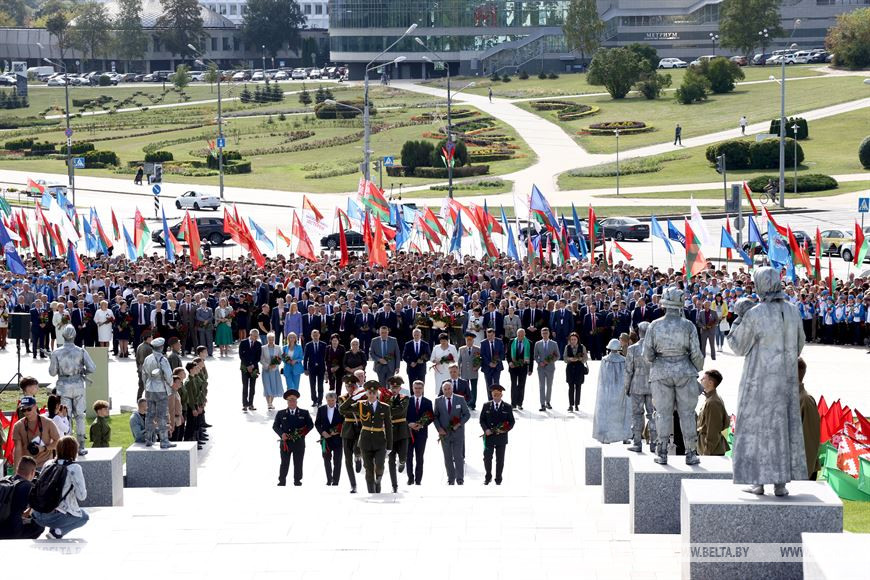 "Мы тоже заботимся о ветеранах и свято чтим память погибших. 8 сентября мы отмечали День памяти жертв блокады Ленинграда. Мы тоже возлагаем цветы, говорим о том, что эта история не давно прошедшая, а это история с большой проекцией на современные события. Мне приятно было констатировать, что в Беларуси те же слова, эмоции и образы", - сказал Константин Сухенко.