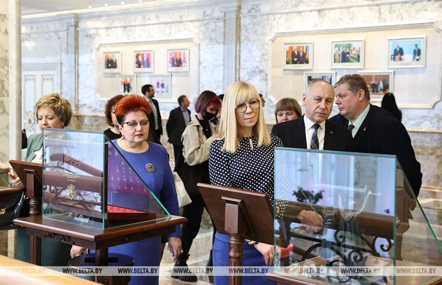 Делясь впечатлениями от экскурсии по Дворцу Независимости, Геннадий Тетерук подчеркнул: "Это место, которое подчеркивает величие государства. Над созданием Дворца Независимости трудились белорусские мастера, которые отразили национальные традиции, культуру и историю. Мы этим гордимся. Гордимся своей страной, которую надо сохранить независимой".-0-