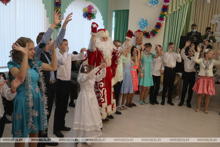 Поздравить с наступающими праздниками воспитанников Белыничской вспомогательной школы-интерната приехали курсанты Института пограничной службы. Они традиционно организуют для ребят занимательное представление с веселыми конкурсами, танцевальными заданиями и зажигательными музыкальными номерами. "Каждый год мы готовим новогоднюю развлекательную программу, стараемся повеселить детей и подарить им праздничное настроение, - говорит старший офицер отделения информации и пропаганды учреждения высшего образования Вероника Макоед. - Я приезжаю сюда уже не в первый раз. И детям всегда интересно, они полностью вовлечены в представление. От нас они ждут не столько подарков, сколько внимания и заботы, эмоциональной сопричастности. Когда видишь, как они искренне и неподдельно радуются, становится очень приятно".