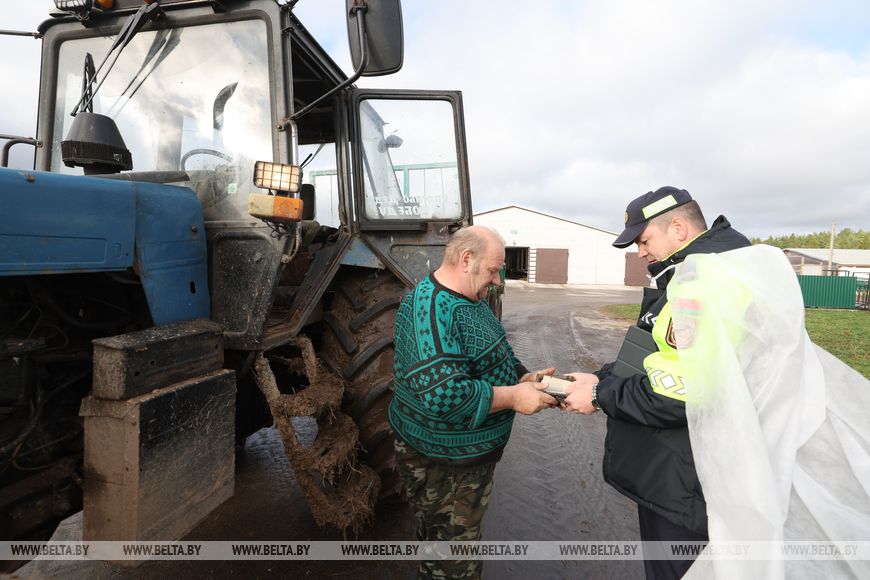 "Кроме прочего, проверяем, чтобы неисправная техника не эксплуатировалась. Смотрим по журналу выхода, как давно выписывалась путевка, условно говоря, на трактор или прицеп с битой фарой, и соотносим, были нарушения или нет. Если находим нарушение, привлекаем ответственное лицо к ответственности", - поделился старший госавтоинспектор отдела ГАИ Лиозненского РОВД Виктор Курневич.