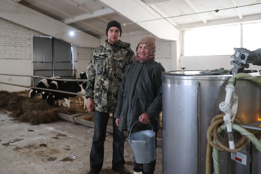 Кстати, на это предприятие идут работать семьями. Здесь мы познакомились с телятницей Оксаной Карповой и ее сыном, животноводом Алексеем. Как рассказала Оксана Ивановна, в хозяйстве трудятся и ее дочери – Ева и Анастасия. Если у Оксаны и Алексея Карповых нашлась минутка рассказать о надеждах семьи, которые они, конечно же, связывают с ОАО "Нестановичи-Агро", то у животновода Светланы Черейской был цейтнот. Одна из буренок только что родила бычка, которого вскоре отнимут от мамы, обсушат под лампами и напоят молозивом. Расти здоровым, малыш!