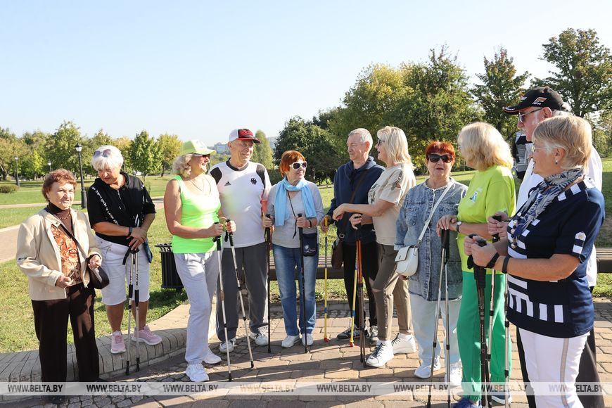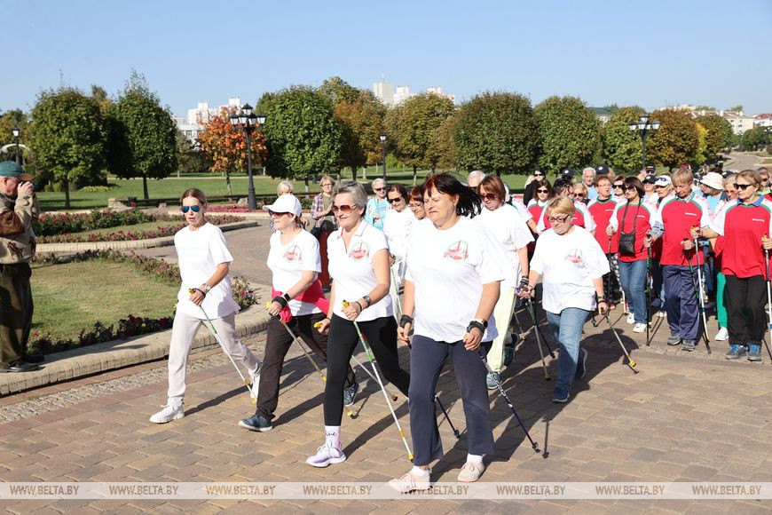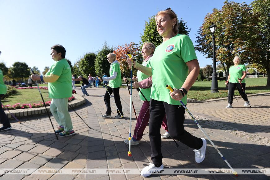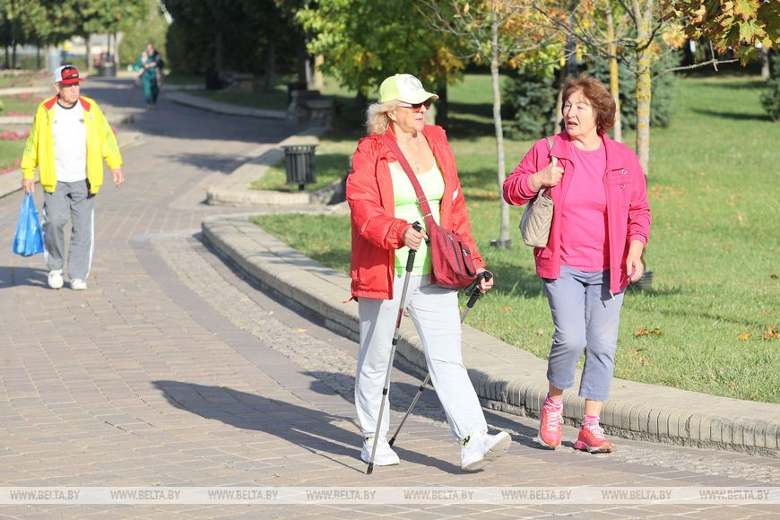 Осень вовсю правит в календаре, но на улице еще по-настоящему летняя атмосфера. Именно в такой день в преддверии Дня пожилых людей по всей Беларуси прошел Республиканский марафон по скандинавской ходьбе среди пенсионеров. Одна из участниц поделилась, что люди серебряного возраста пришли показать, насколько они прекрасны, успешны и молоды душой. Корреспонденты БЕЛТА присоединились к празднику здоровья и узнали у пожилых людей, почему они предпочитают именно скандинавскую ходьбу.