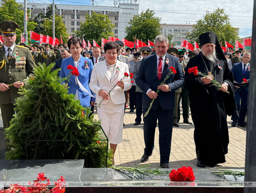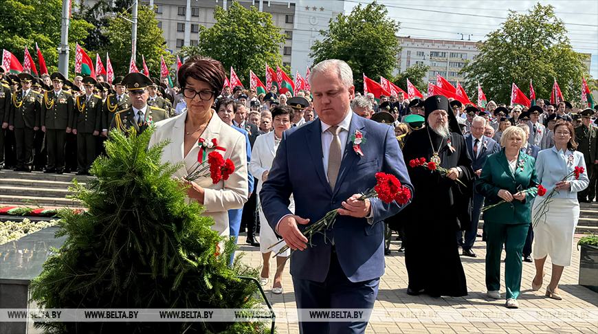 На Аллее Героев почтить память тех, кто принес свободу, мир и независимость родной земле, пришли ветераны, руководство области и города, члены Совета Республики, воинские подразделения, представители трудовых коллективов, общественных организаций, молодежь, жители и гости города.