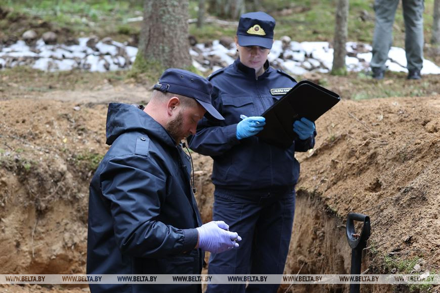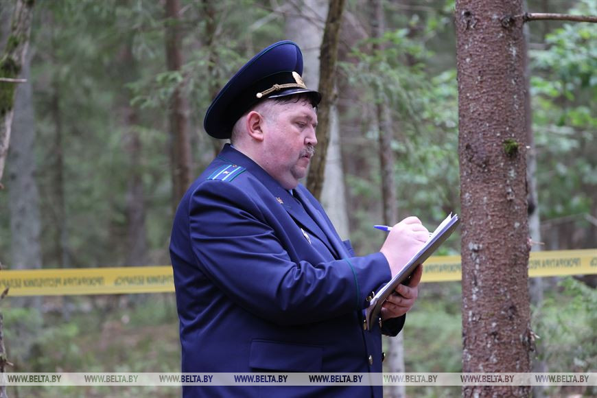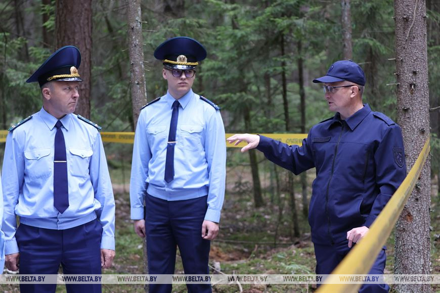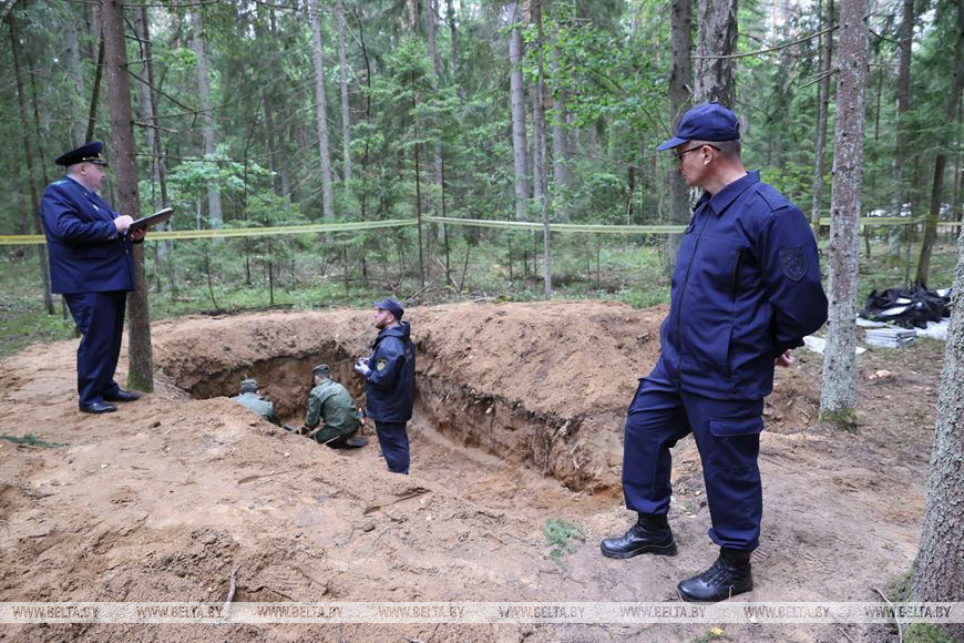 27 июля, Минск /Корр. БЕЛТА/. Прокурорские работники Минской области и города Минска посетили места раскопок ранее неизвестного захоронения мирных граждан в лесном массиве возле агрогородка Богушевичи, которое было установлено в ходе расследования уголовного дела о геноциде белорусского народа, передает корреспондент БЕЛТА.