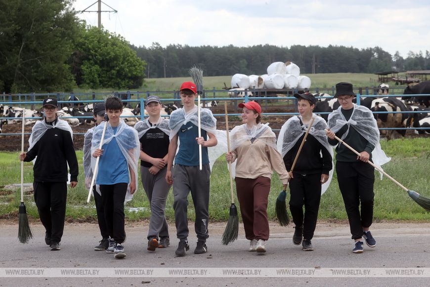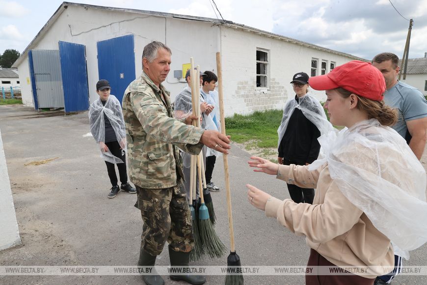 Фронт работ на день (точнее, на не более чем 4 трудовых часа) очерчивает ведущий зоотехник "Климовки" Станислав Гуценков - ребятам предстоит убирать территорию комплекса. "Работают как пчелки", - дает оценку опытный аграрий.
