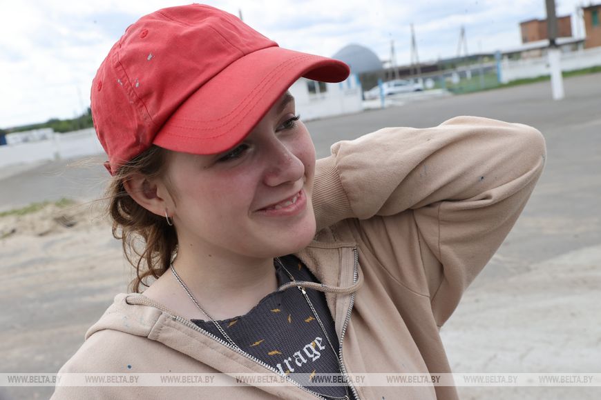 "Приходим трудиться с отличным настроением", - включается в разговор Варя Родинович. "В принципе, я практически такую же работу и дома родителям помогала выполнять. Ничего сложного нет. Работы не боюсь", - заверяет она.
