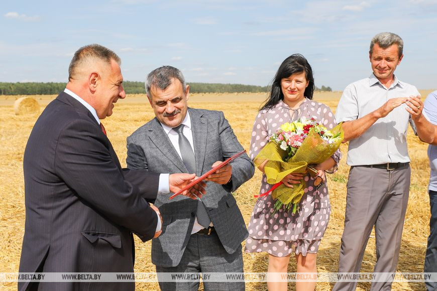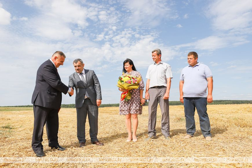 На утро 3 августа в хозяйствах района собрали 102,4 тыс. т зерна. Убрано 72% площадей при урожайности 45,7 ц/га - на 6 ц больше, чем в прошлом году. Поздравить лидеров жатвы и поблагодарить за добросовестный труд в район приехал первый заместитель председателя Брестского облисполкома Валерий Ребковец. Он отметил, что в целом уборка в регионе идет в запланированных темпах. "Хозяйства обеспечены необходимыми ресурсами, техника исправна, погода в последние дни помогает. Задача - за эту неделю завершить в южных районах массовую уборку зерновых", - подчеркнул заместитель губернатора.