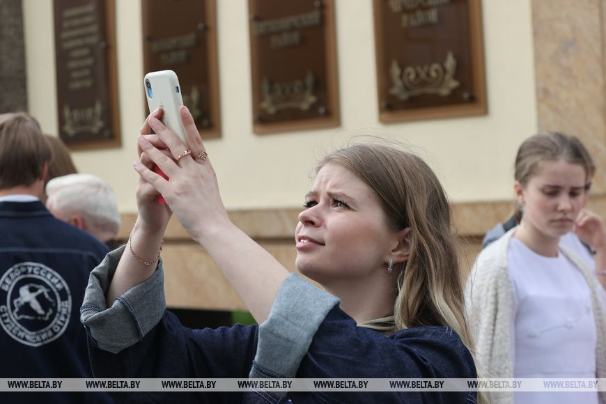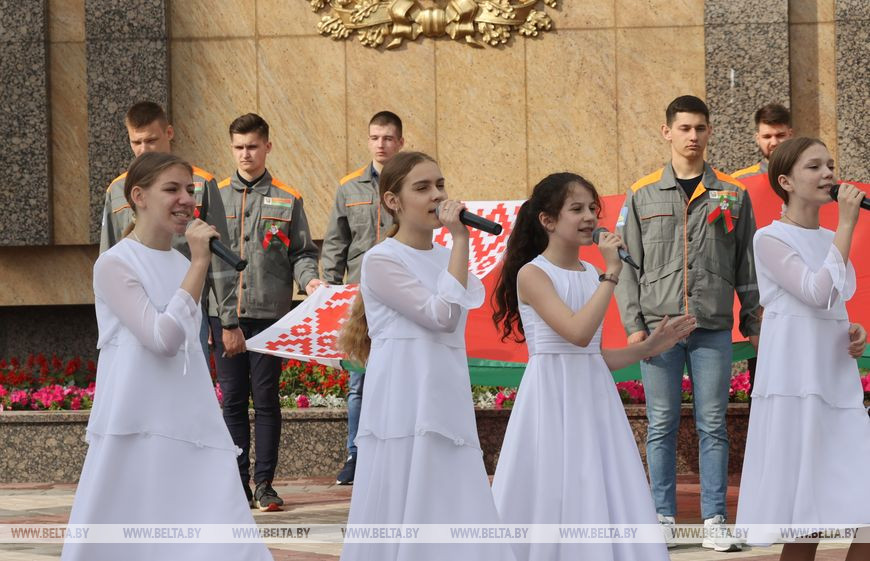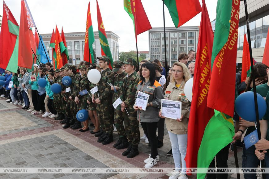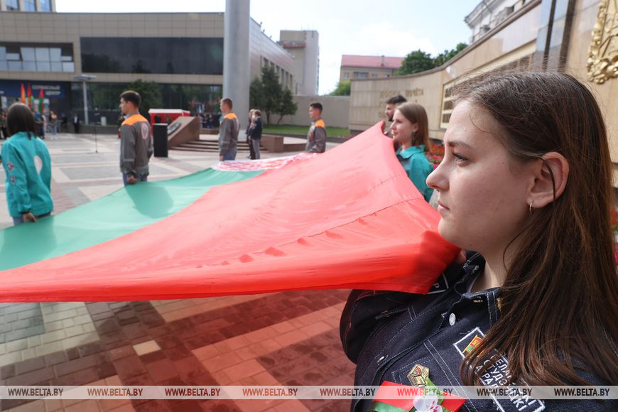 "Говорят, сила патриотизма пропорциональна вложенному человеком личному труду. Под нашим флагом вот уже четверть века Беларусь динамично развивается и утверждается на международной арене. Он озаряет наши спортивные победы, реет на высочайших вершинах планеты, представляет республику в других странах, скрепляет национальное согласие и патриотический дух белорусского народа. Для популяризации государственных символов в Год народного единства союз молодежи Беларуси дал старт республиканскому проекту "Роднае народнае". И сегодня мы также вручили флаг Республики Беларусь командирам студенческих отрядов области", - рассказали в обкоме БРСМ.