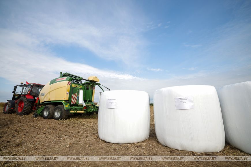 "Это дает возможность запечатывания корма, то есть создание среды без доступа внешнего воздуха. Корм в таких условиях получается более качественный, исключается попадание на него осадков, а значит, и (обеспечивается. - Прим. БЕЛТА/ лучшая сохранность. Он находится практически в таком состоянии, каким его в пленку положили. Понятно, что это требует определенных затрат, и самой затратной частью является именно сама пленка (до 60% от стоимости корма)", - рассказал Василий Сысоев.