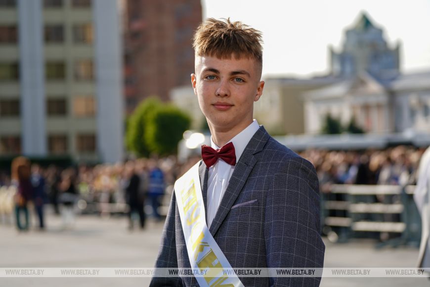 С белой лентой выпускника через плечо среди золотых медалистов стоит учащийся СШ №5 Могилева Дмитрий Герасимович. "Золотая медаль для меня - это достижение, к которому я шел с первого класса - много читал, настраивался на отличную учебу, - улыбается парень. - Хочется получить достойную профессию, которая будет нужна этому миру. Планирую связать свою жизнь с энергетикой, буду поступать в столичный вуз. Уверен, что связанная с этой отраслью профессия всегда будет актуальна. Мой отец также работает в энергетической сфере, хочу продолжить его путь".Выпускник признается, что прощаться со школой ему очень грустно. "Чувства и эмоции переполняют, но я держусь, - признается он. - Очень рад, что выпускной проходит в таком формате - все очень красивые и классные. А еще для нас подготовили замечательный концерт. Это очень хорошая и памятная история - вот так ярко и весело закончить 11 лет обучения, поэтому точно будет что вспомнить. Получим впечатления на всю жизнь!"