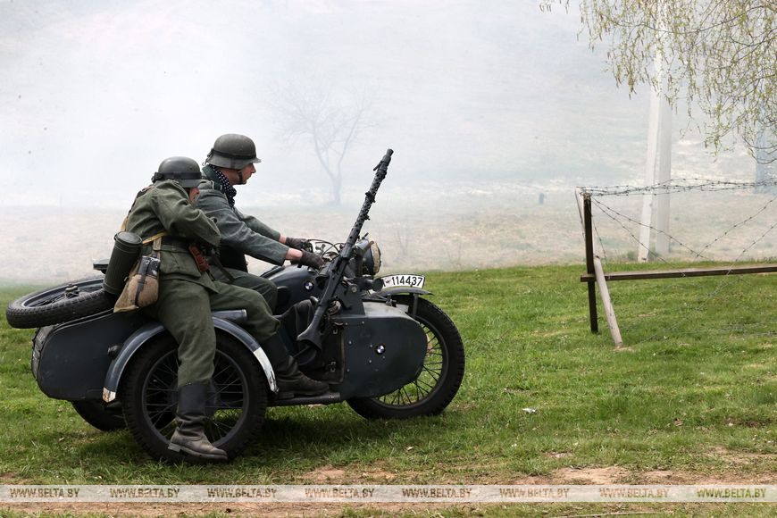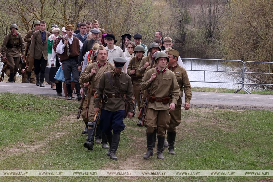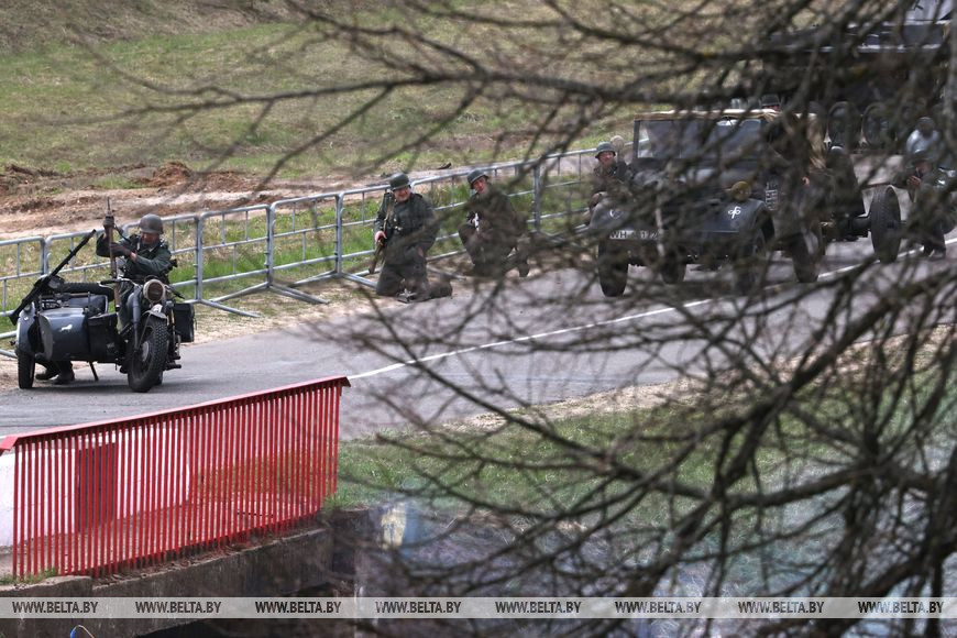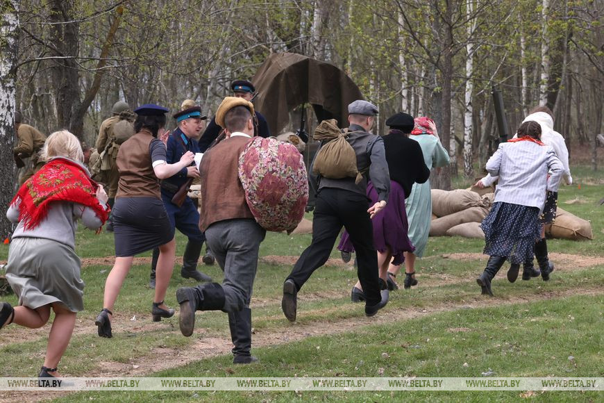В постановке задействованы порядка 100 человек, в том числе гомельские, минские и могилевские реконструкторы. Использовано почти полтора десятка единиц боевой техники и вооружения, в том числе три самолета, танк, броневики, мотоцикл. Не обошлось и без спецэффектов - пиротехнической постановки, которая воссоздается только на съемках военных фильмов. Это придало зрелищность развернувшимся событиям.